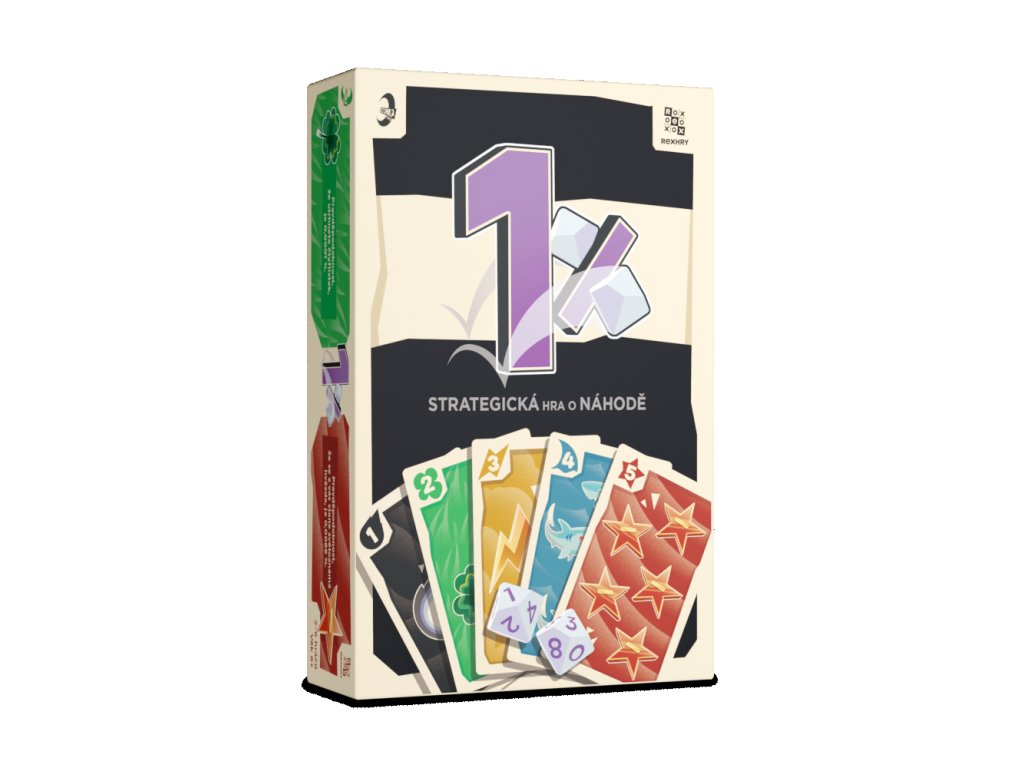 1%: Strategická hra o náhodě je zábavná karetní hra s kostkami! Na jejím počátku jsou vaše šance na výhru přesně jedno procento.