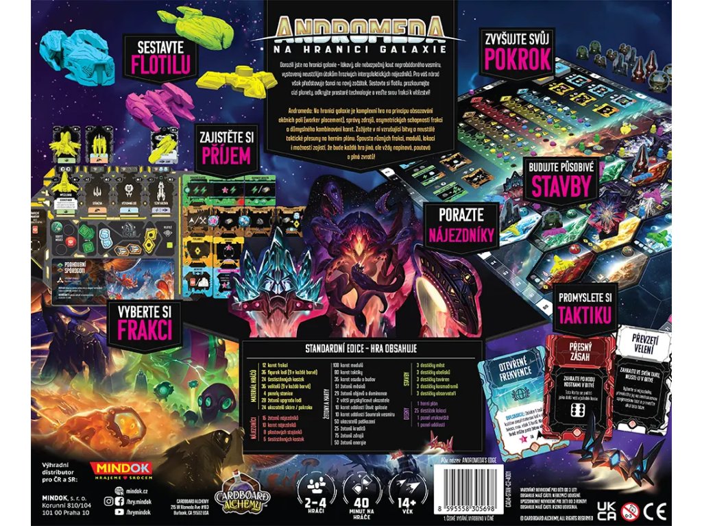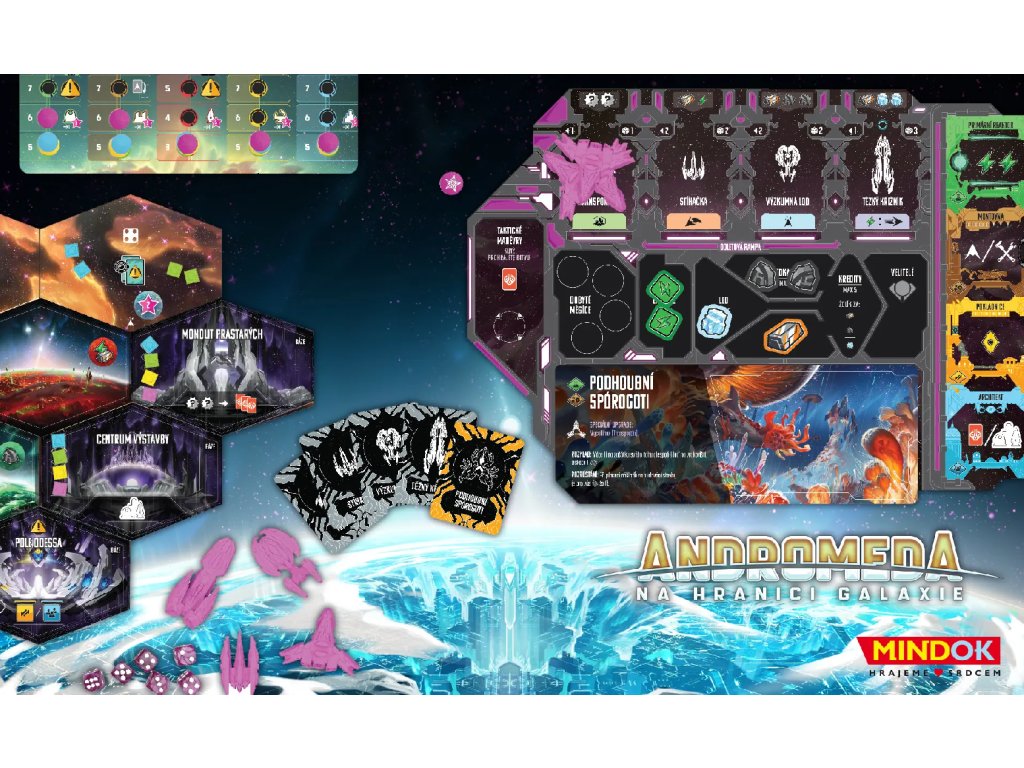 Hra Andromeda: Na hranici galaxie je určena pro 2-4 hráče a kombinuje strategické plánování s prvky správy zdrojů a taktického rozhodování. Hráči vysílají své lodě na různé lokace, aby získali zdroje a provedli akce, a zároveň musí čelit výzvám, jako jsou nájezdníci z mlhovin.