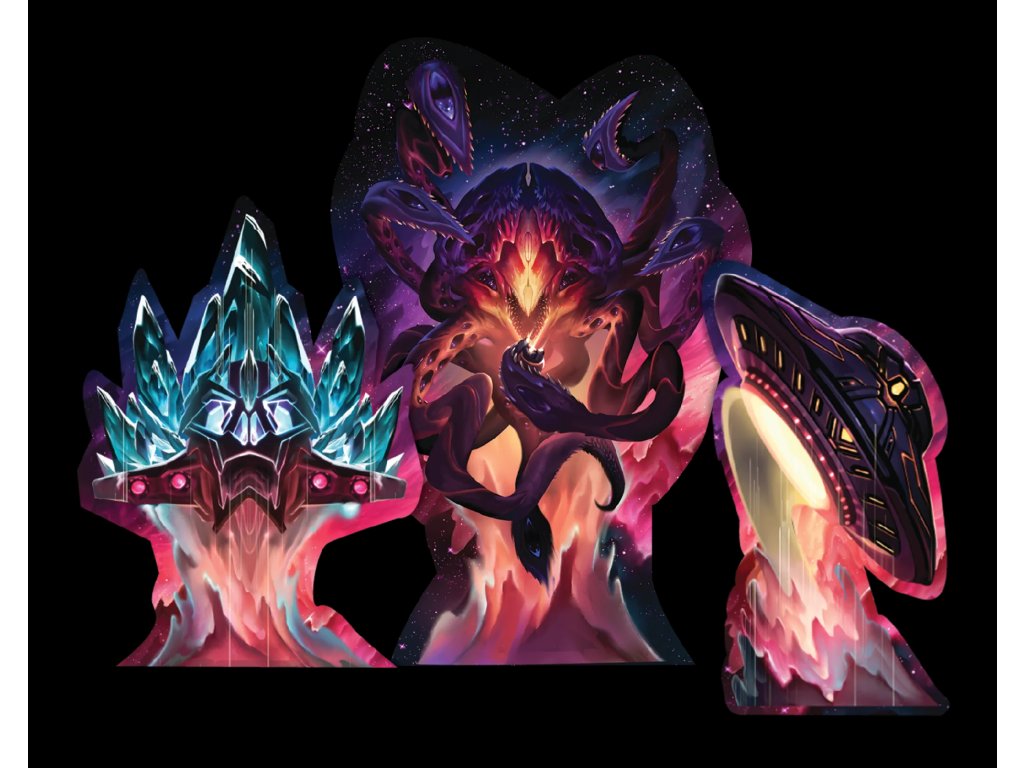 - Žetony a karty: 108 karet modulů, 80 karet taktiky, 35 karet osudu a budov, 51 žetonů měsíců, 29 žetonů objevů a dominance, 2 vetší pryskyřicové ukazatele, 10 karet událostí Úsvit galaxie, 10 karet událostí Soumrak vesmíru, 50 ukazatelů poškození, 25 žetonů kreditů, 75 žetonů zdrojů, 50 žetonů energie