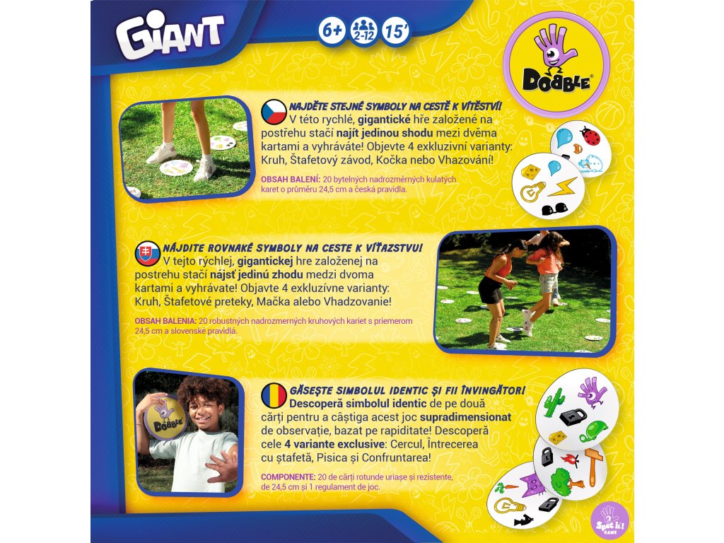 Dobble Giant vychází z klasické postřehové hry Dobble, ale díky novým pravidlům a velkým kartám z ní dělá zábavnou in- i outdoorovou aktivitu.