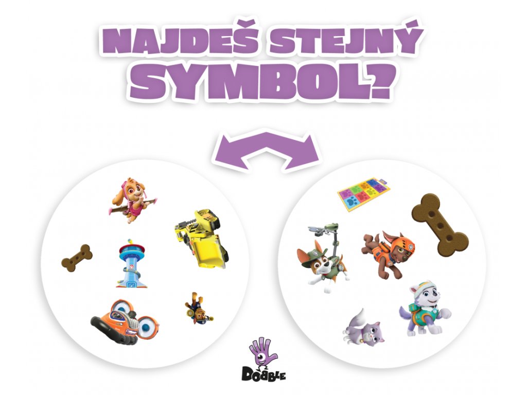 Ve hře Dobble PAW Patrol se můžete těšit na své oblíbené postavy ze seriálu Tlapková patrola. Čeká na vás super špion Chase, letecká záchranářka Skye, popelář Rocky, kapitán patroly Ryder a mnoho dalších postav a předmětů, které jistě dobře znáte!