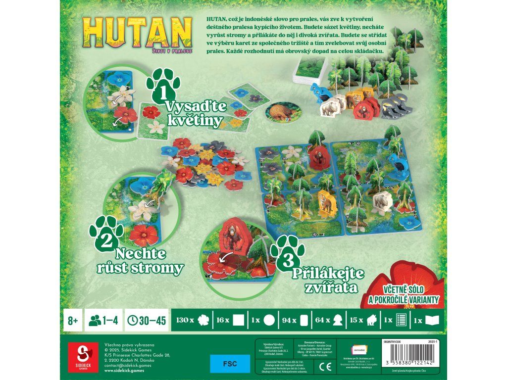 HUTAN znamená v indonéštině prales a hutan hujan deštný prales. V této hře se přesunete do Indonésie, kde budete sázet květiny a stromy a lákat zvířata, a přitom soutěžit o to, kdo bude mít nejživější a nejúchvatnější prales.