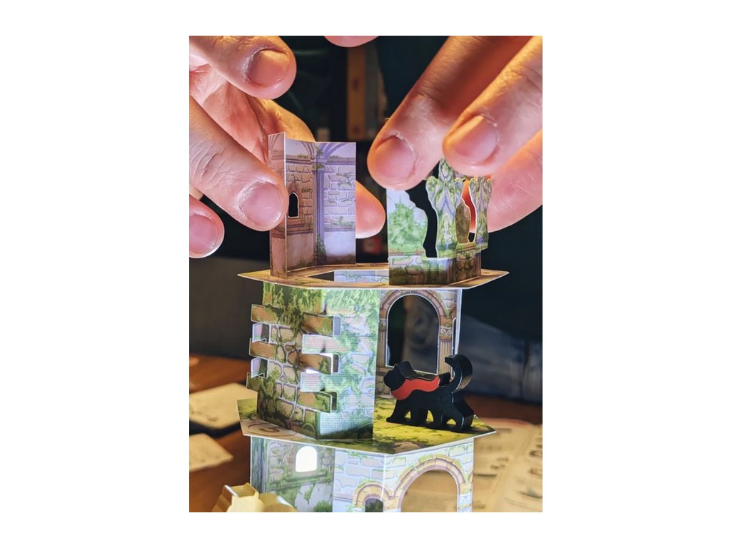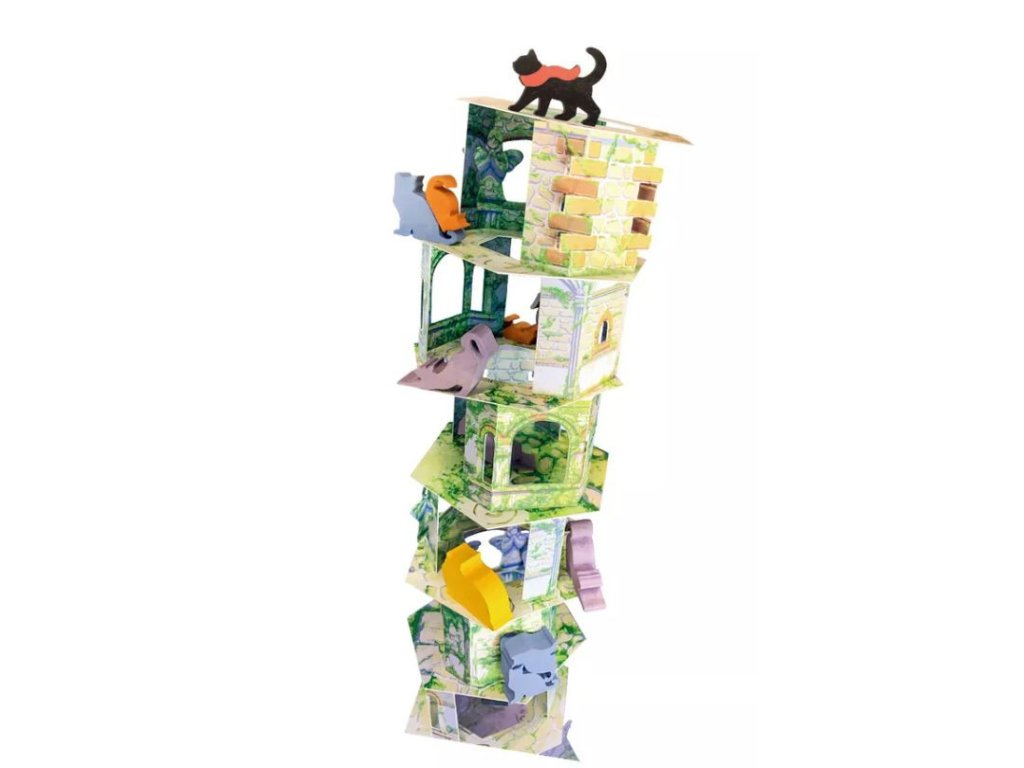 Společně stavíte věž z karet a dílků různých velikostí, přičemž každé rozhodnutí může ovlivnit její stabilitu. Nechybí ani dovednostní výzvy, které prověří vaši pevnou ruku a umožní Totovi postup vzhůru. Hra je plná napětí a moc zábavní jsou i Totovi kočičí přátelé, kteří vám někdy pomohou, jindy zkomplikují život. Každé správné umístění přátel dodává Totovi odvahu pokračovat dál. Vyhrajete, pokud se vám podaří nezbořit věž a dostat Tota až na vrchol!