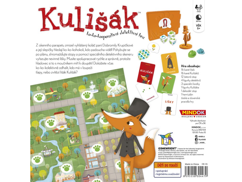 Pohybujte se po plánu, shromažďujte stopy a pomocí speciálního detektivního skeneru vyřazujte nevinné lišky. Musíte spolupracovat rychle a správně, protože hladovec si to s moučníkem míří k doupěti! Dokážete včas ko-ko-kolektivně odhalit, kdo má v loupeži tlapy, nebo zvítězí lišák Kulišák