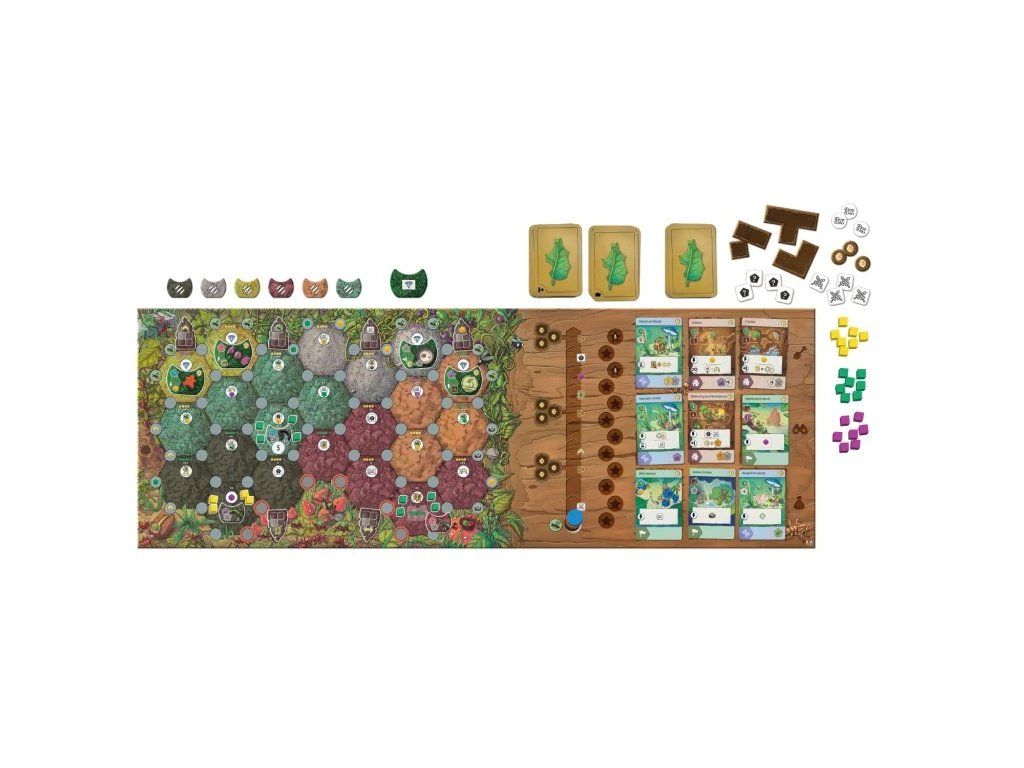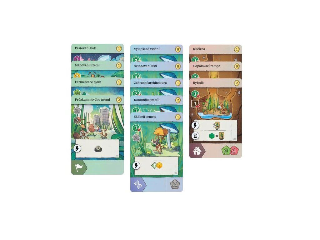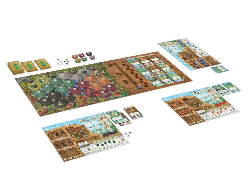 Jádrem hry je správa životního cyklu kolonie. Na své destičce vývoje sleduješ tři stádia — vajíčka, larvy a mravence — a v každém z nich tři specializace: kopáči, průzkumníci a sběrači. Divocí mravenci fungují jako univerzální jednotky, které mohou zastoupit jakoukoli specializaci.