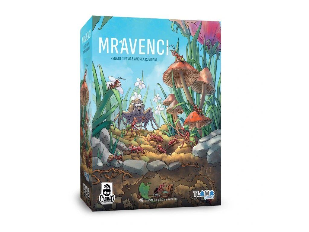 MRAVENCI jsou komplexní strategická hra zaměřená na správu mravenčí kolonie a rozšiřování území v zahradě. Každý hráč začíná s jednou z několika unikátních destiček královny, které výrazně ovlivní jeho strategii i způsob, jakým bude pracovat s propojenými herními systémy.