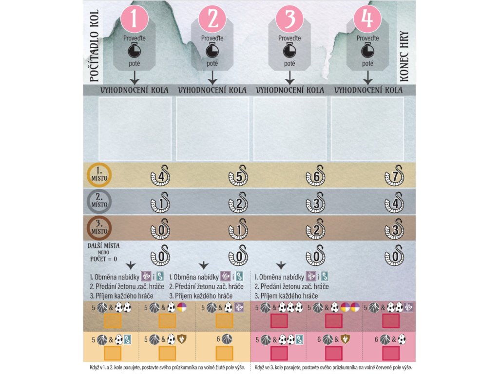 | Herní mechanismy: | Správa karet v ruce (Hand Management), Sólová varianta hry (Solo / Solitaire Game), Výběr z veřejné nabídky (Open drafting), Bonusy na konci hry (End Game Bonuses), Turn Order: Progressive |
