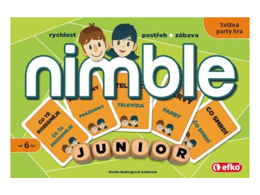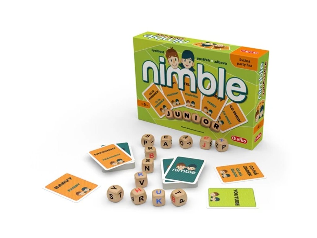 Slovo 'Nimble' [čti nimbl] pochází z angličtiny a znamená „pohotový“. A to přesně vystihuje hlavní myšlenku hry. Žádné čekání na tah soupeře. Hrají všichni najednou. Hlavní je rychle se rozhodnout a díky tomu získat pro sebe co nejvíc bodů. Tak zapni mozek, drapni kostku a vyhraj!