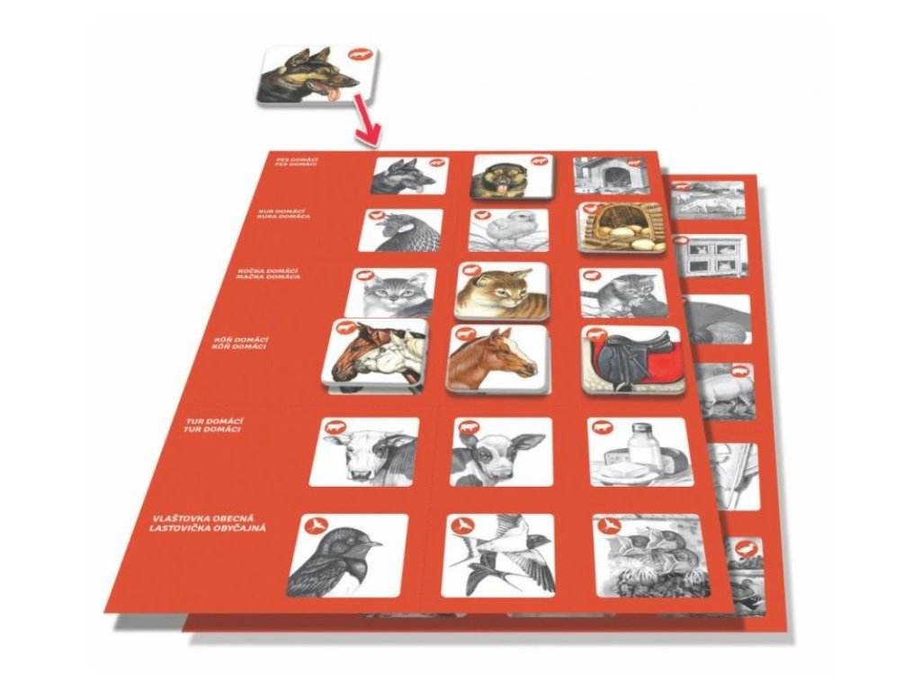 Hráči na pokyn zároveň otočí kartičku ze své hromádky: kdo ji dříve správně přiloží na LOTO plakát a kartičku správně pojmenuje – ten tento tah vyhrává!