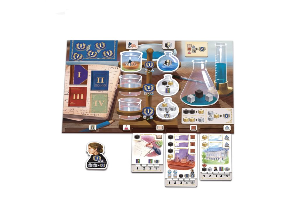 V této rodinné hře se ocitnete v roli mladých vědců, kteří pracují po jejím boku a pomáhají jí ve výzkumu. Objevte společně radium, provádějte experimenty, vylepšujte svou laboratoř, publikujte vědecké teze a podílejte se na získání Nobelovy ceny!