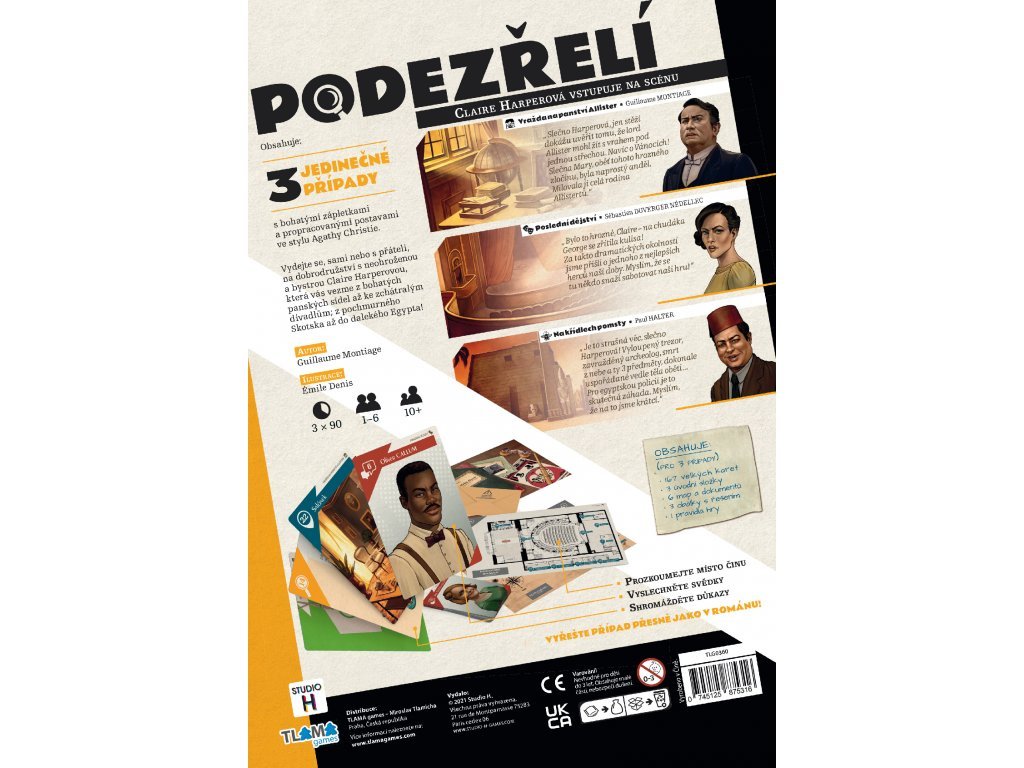 Detektivní hra Podezřelí obsahuje 3 jedinečné případy s bohatými zápletkami a propracovanými postavami ve stylu Agathy Christie.