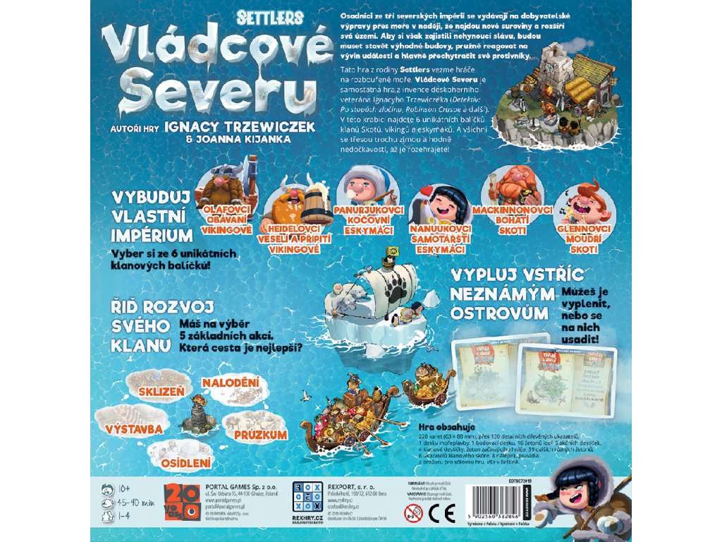 Settlers: Vládcové severu je samostatná hra ze světa hry Settlers. Tentokráte vás čeká trojice severských národů - Vikingové, Skoti a Eskymáci a také zcela nové mechanismy, které se liší od původní hry. Ve Vládcích severu totiž dostanete k dispozici již předpřipravené balíčky (dva klany pro každý ze tří národů) a je jen na vás, jak s nimi zahrajete. Pozor, Vládce severu nelze kombinovat s původními Settlery!