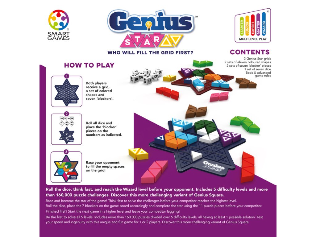 - Pěti úrovněmi obtížnosti: Genius Star si užijí malí i velcí hráči, začátečníci i zkušení luštitelé.