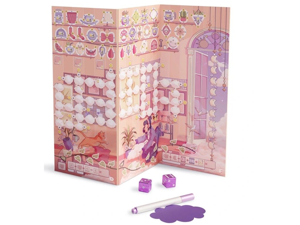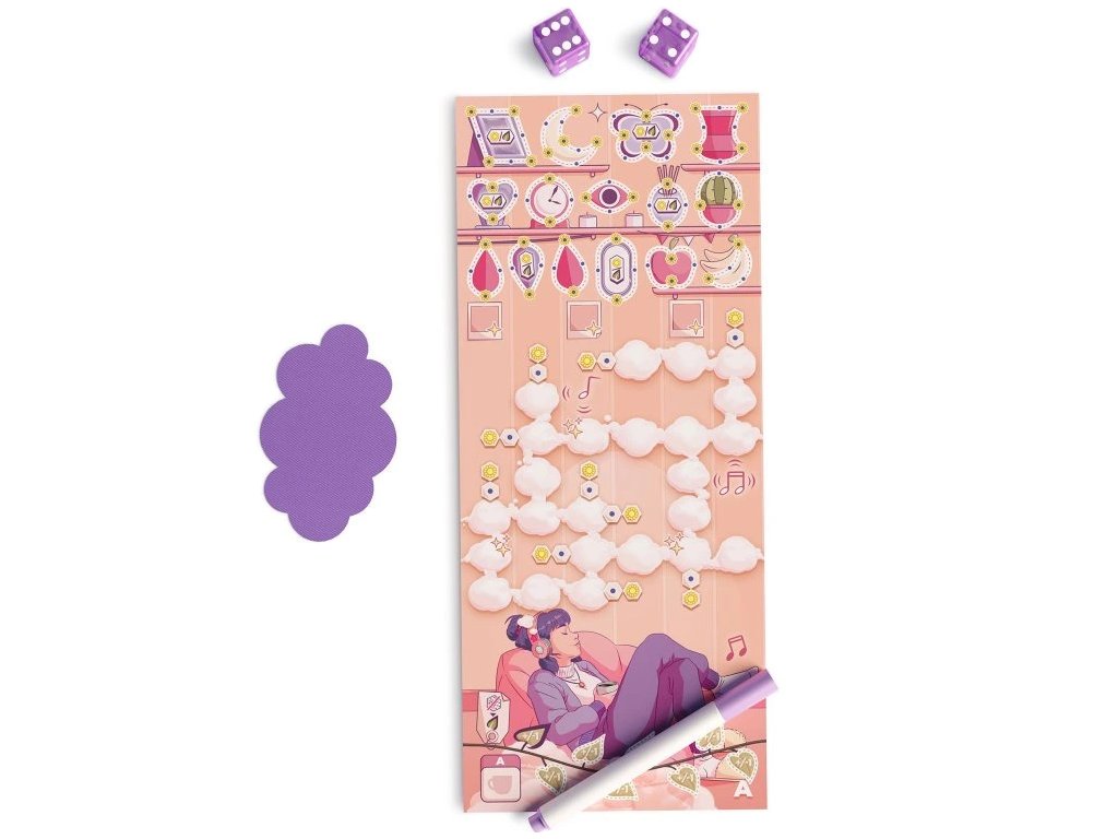 Zasnění je pohodová hra typu roll-and-write. Vyplňujte svou obláčkovou mřížku tím, že všichni současně zapisujete hodnoty hozené na kostkách.